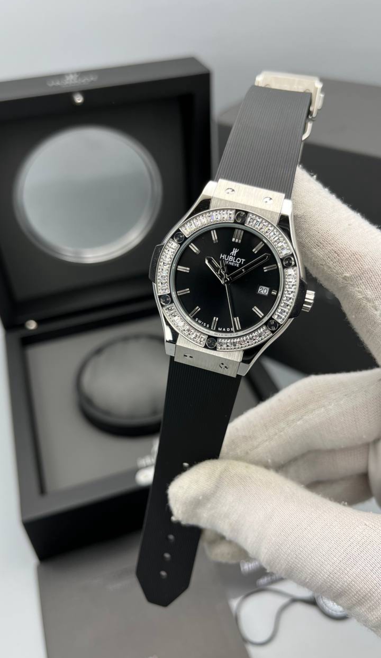 ساعت مچی زنانه هابلوت نگین دار مشکی سیلور