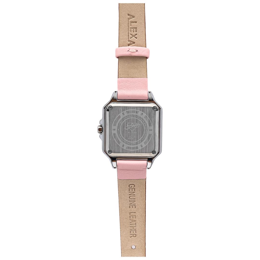ساعت مچی الکسا زنانه بند چرم چهارگوش قاب استیل نگین دار