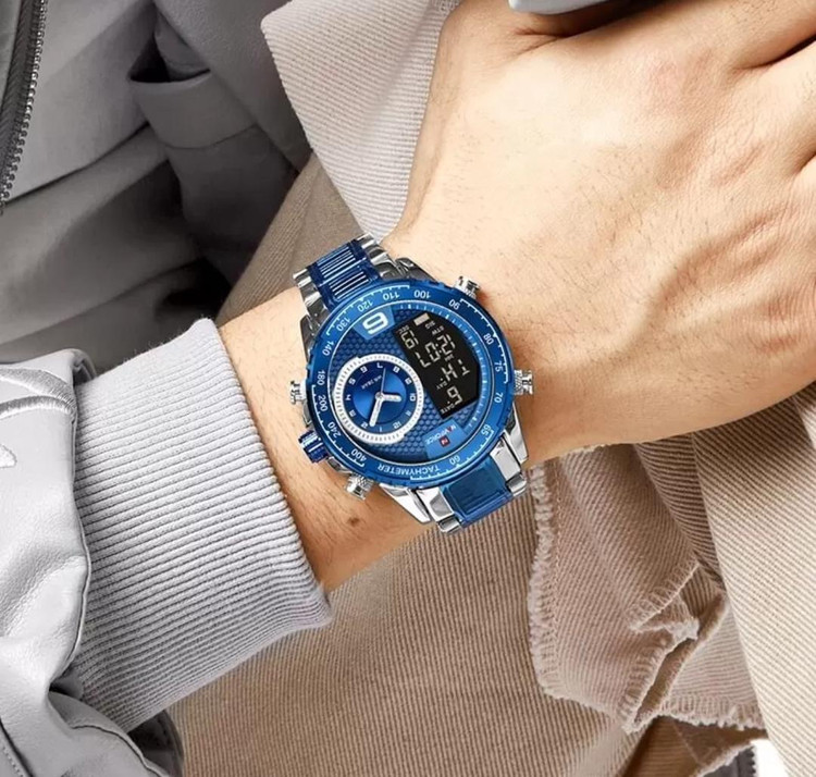 دارای نشانگر تاریخ و ساعات شبانه روز و روزهای هفته و روزهای ماه و کرنومتر
