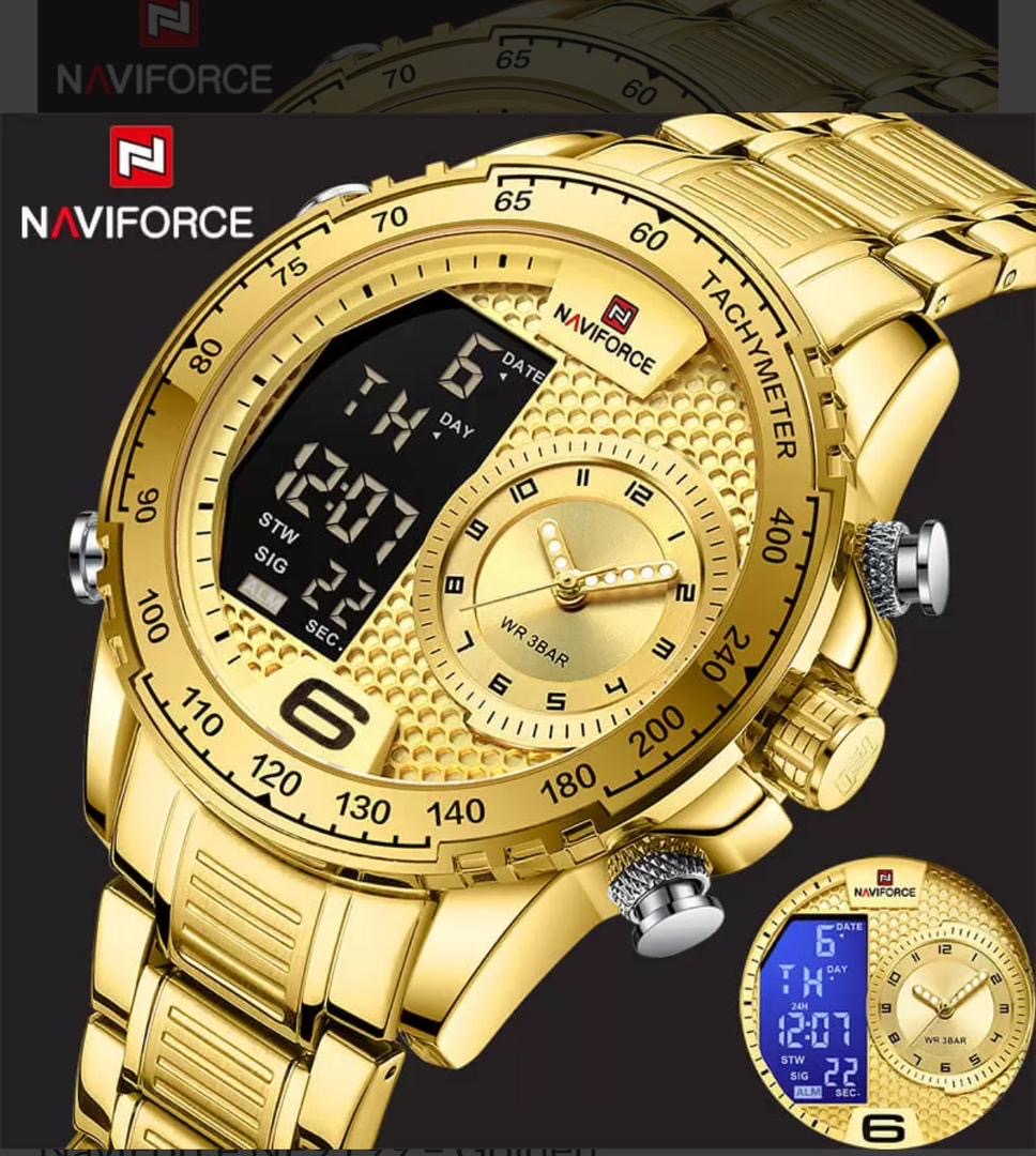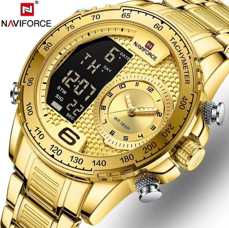 دارای نشانگر تاریخ و ساعات شبانه روز و روزهای هفته و روزهای ماه و کرنومتر