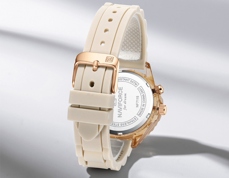 ساعت Naviforce مدل NF7115 یک ساعت زنانه اسپرت با طراحی مدرن و رنگبندی متنوعه که هم ظاهر جذابی داره و هم امکانات کاربردی. اینم مشخصات کاملش: