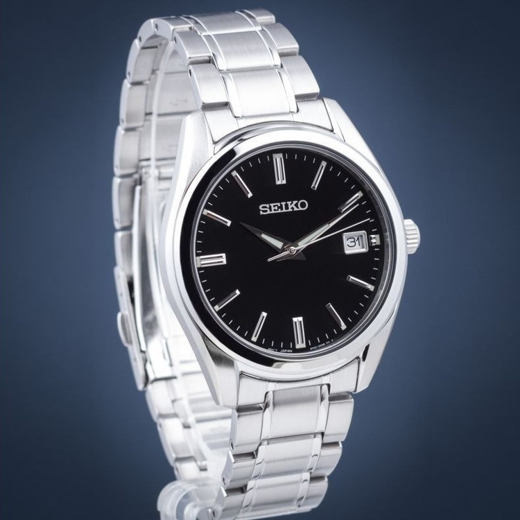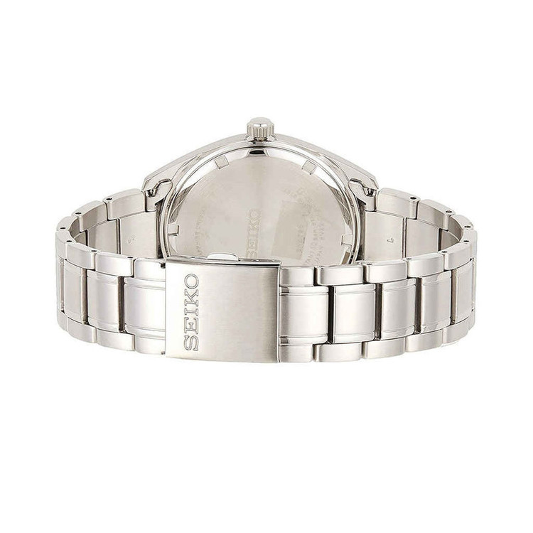 این طرح از برند ساعت سیکو با طراحی و سادگی خود برای تیپهای مجلسی بسیار مناسب می باشد. بند و بدنه ی این ساعت سیکو از جنس استیل است که از ترکیب رنگهای نقره ای و مشکی در آن استفاده شده است. از ویژگیهای منحصر به فرد این ساعت میتوان به طراحی بسیار شیک و مجلسی ساعت در عین سادگی آن اشاره کرد. این ساعت از برند سیکو دارای نمایشگر روزهای ماه نیز است.