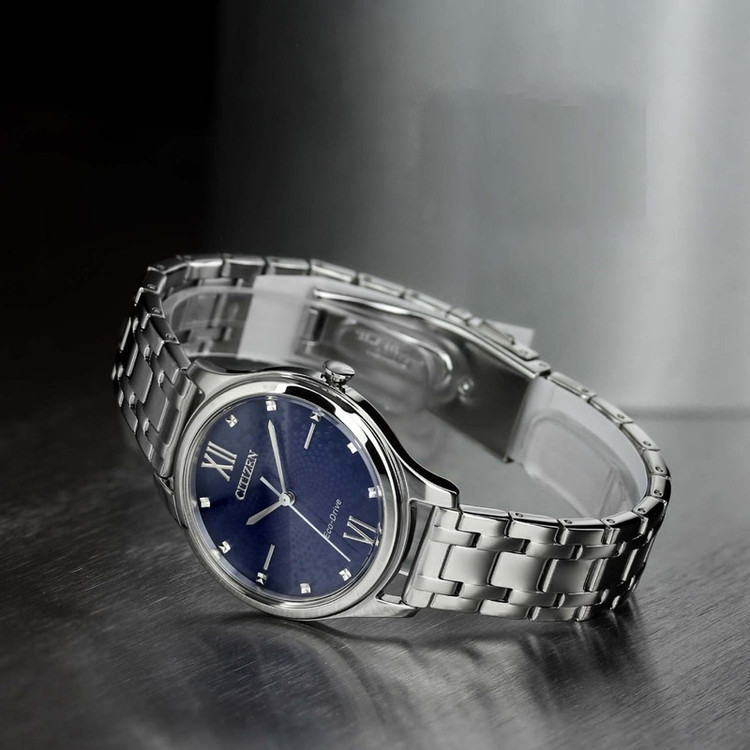 این مدل از ساعت مچی های زنانه برند سیتیزن دارای بدنه و بند استیل نقره ای می باشد. این ساعت اکودرایو بوده و قابلیت شارژ با نور را دارد. طراحی خاص صفحه این ساعت جذابیت منحصر به فردی به این ساعت بخشیده است.از ویژگی های منحصر بفرد این ساعت میتوان به ذخیره شارژ باطری تا 6ماه اشاره کرد.