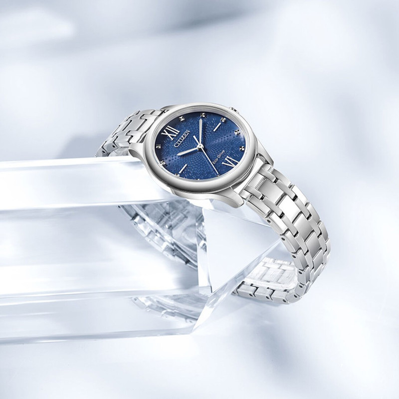 این مدل از ساعت مچی های زنانه برند سیتیزن دارای بدنه و بند استیل نقره ای می باشد. این ساعت اکودرایو بوده و قابلیت شارژ با نور را دارد. طراحی خاص صفحه این ساعت جذابیت منحصر به فردی به این ساعت بخشیده است.از ویژگی های منحصر بفرد این ساعت میتوان به ذخیره شارژ باطری تا 6ماه اشاره کرد.
