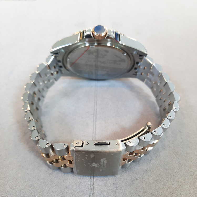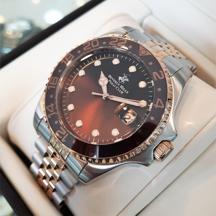 این طرح از برند ساعت پولو بورلی هیلز با طراحی خاص خود برای تیپهای مجلسی بسیار مناسب میباشد. بند و بدنه ی این ساعت پولو از جنس استیل است و از رنگ های نقره ای و رزگلد و قهوه ای در آن استفاده شده است. از ویژگیهای منحصر به فرد این ساعت میتوان به طراحی زیبای بند این ساعت و سادگی صفحه ی آن که مورد پسند افراد ساده پسند هست اشاره کرد. همچنین این ساعت دارای نمایشگر روزهای ماه میباشد.