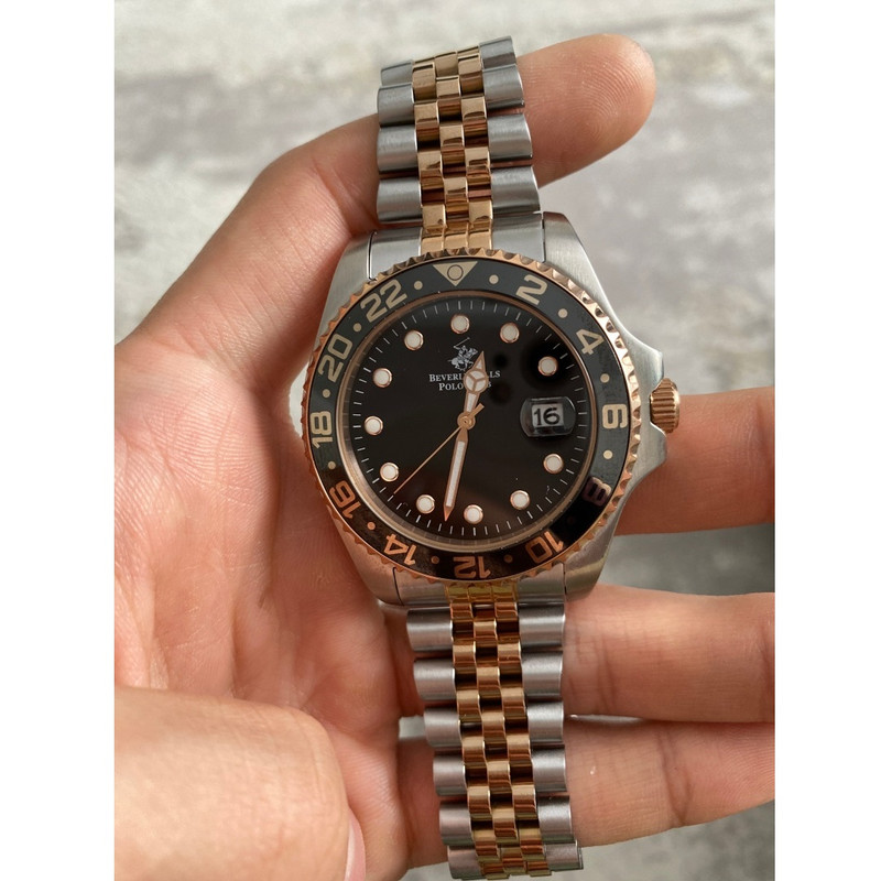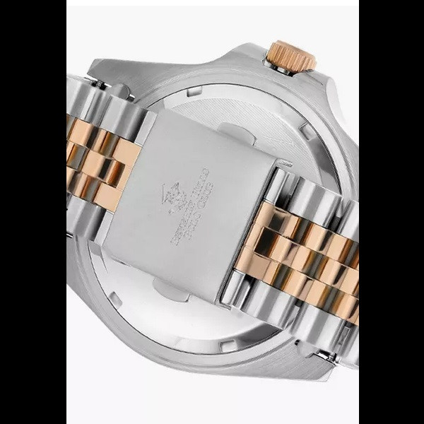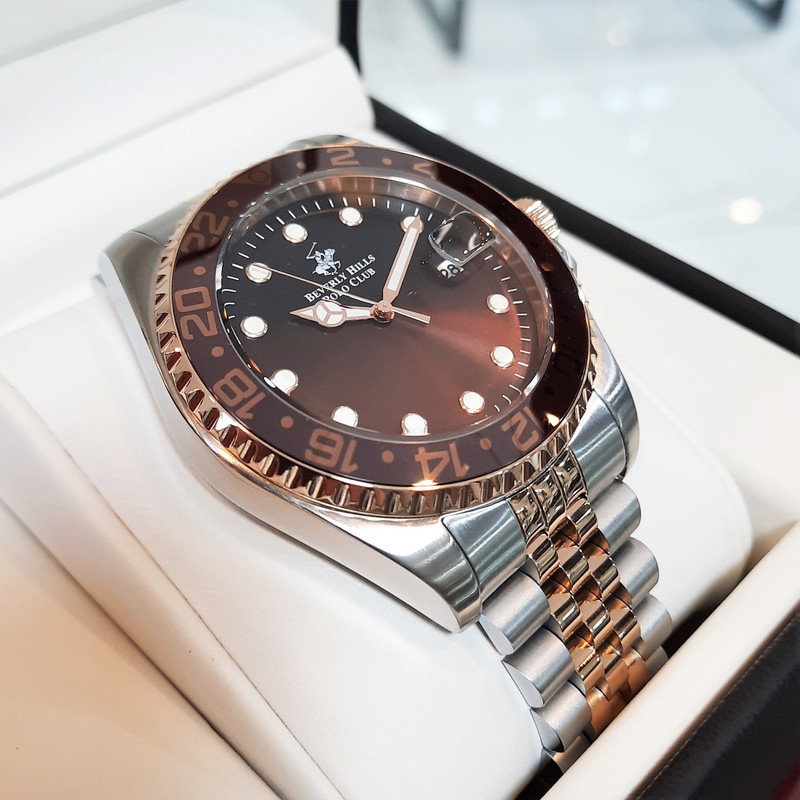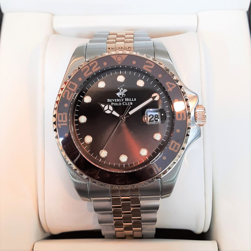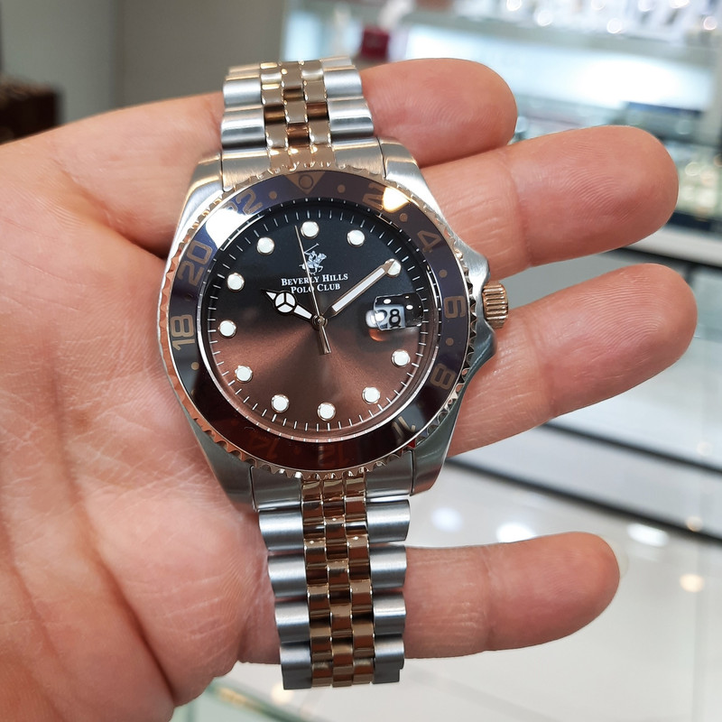 این طرح از برند ساعت پولو بورلی هیلز با طراحی خاص خود برای تیپهای مجلسی بسیار مناسب میباشد. بند و بدنه ی این ساعت پولو از جنس استیل است و از رنگ های نقره ای و رزگلد و قهوه ای در آن استفاده شده است. از ویژگیهای منحصر به فرد این ساعت میتوان به طراحی زیبای بند این ساعت و سادگی صفحه ی آن که مورد پسند افراد ساده پسند هست اشاره کرد. همچنین این ساعت دارای نمایشگر روزهای ماه میباشد.