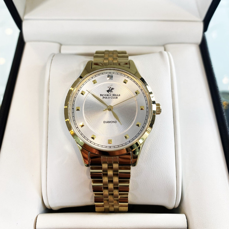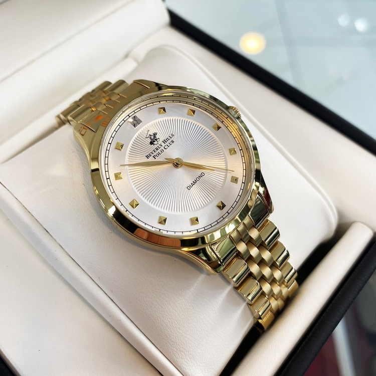 این طرح از برند ساعت پولو بورلی هیلز با طراحی خاص خود برای تیپهای مجلسی بسیار مناسب میباشد. بند و بدنه ی این ساعت پولو از جنس استیل است و از رنگ های طلایی در آن استفاده شده است. از ویژگیهای منحصر به فرد این ساعت میتوان به طراحی زیبای بند این ساعت و سادگی صفحه ی آن که مورد پسند افراد ساده پسند هست اشاره کرد.
