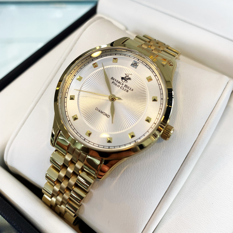 این طرح از برند ساعت پولو بورلی هیلز با طراحی خاص خود برای تیپهای مجلسی بسیار مناسب میباشد. بند و بدنه ی این ساعت پولو از جنس استیل است و از رنگ های طلایی در آن استفاده شده است. از ویژگیهای منحصر به فرد این ساعت میتوان به طراحی زیبای بند این ساعت و سادگی صفحه ی آن که مورد پسند افراد ساده پسند هست اشاره کرد.
