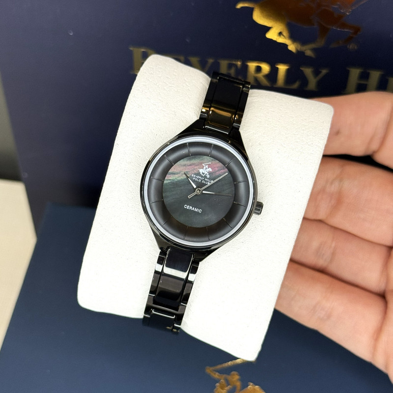 این طرح از برند ساعت پولو بورلی هیلز با طراحی خاص خود برای تیپهای مجلسی بسیار مناسب میباشد. بند و بدنه ی این ساعت پولو از جنس ترکیب سرامیک و استیل است و از رنگ مشکی در آن استفاده شده است. از ویژگیهای منحصر به فرد این ساعت میتوان به طراحی ساعت اشاره کرد که درعین سادگی برای تیپهای مجلسی بسیار مناسب میباشد. همچنین این ساعت از ظریف ترین ساعتهای پولو بوده و بسیار باریک میباشد و به راحتی روی هر مچ دستی میخوابد. صفحه ی این ساعت نیز صدفی میباشد که در نورهای متفاوت به رنگ های مختلفی دیده میشود و زیبایی این ساعت را دو چندان مینماید. جنس بند و بدنه ی این ساعت از استیل 318L بوده که بهترین نوع استیل است و کاملا رنگ ثابت میباشد. این ساعت پولو اورجینال بوده و با پکیج کامل به همراه دفترچه گارانتی خدمت مشتری ارسال میشود.