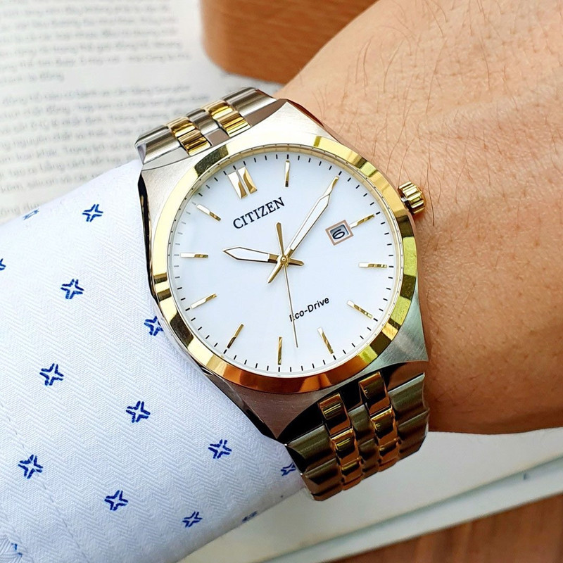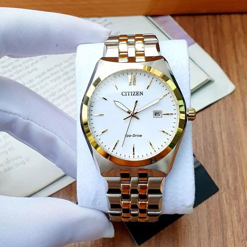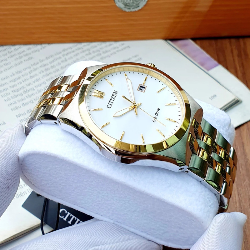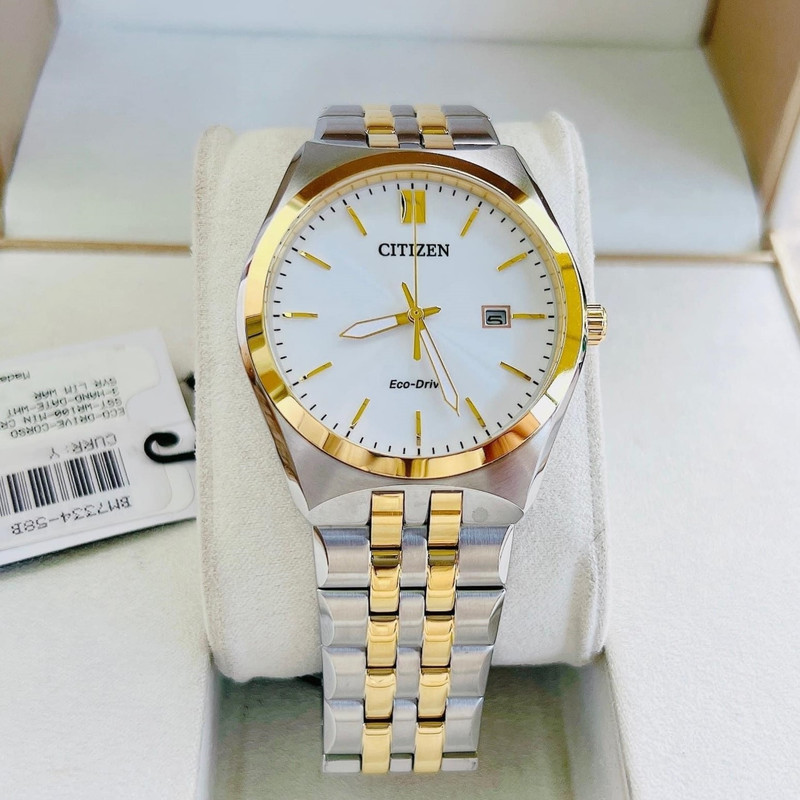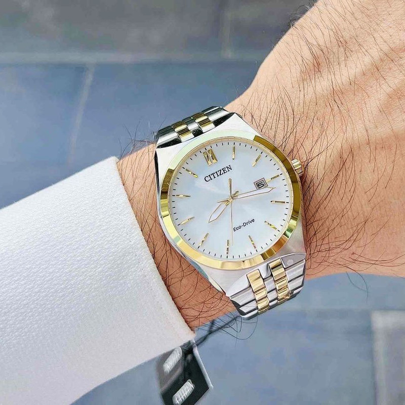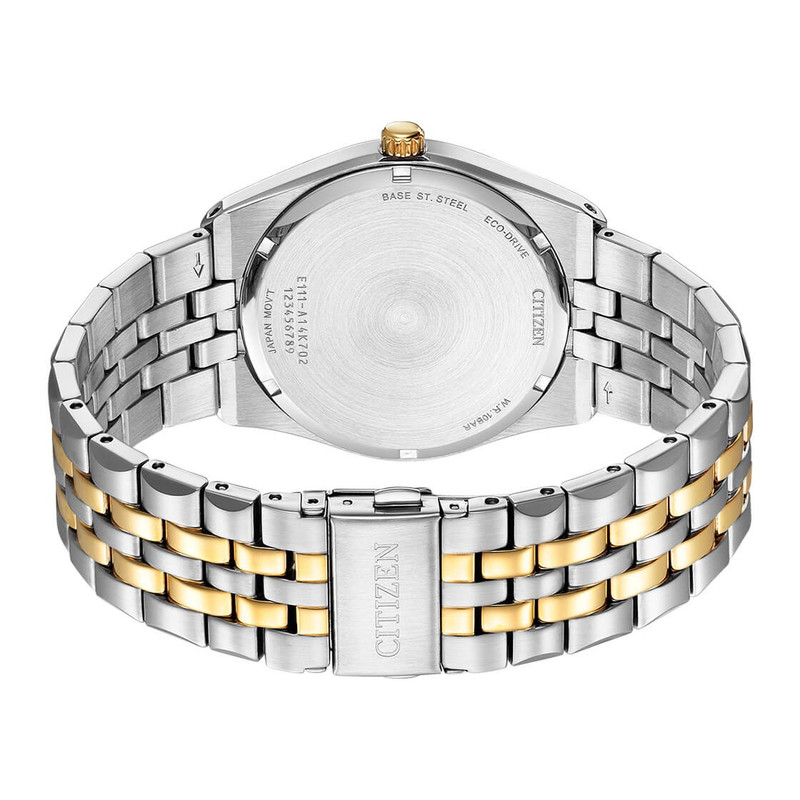 این طرح از ساعت مچی های مردانه برند سیتیزن از طرح های کلاسیک و مجلسی این برند می باشد و از طراحی خاص و منحصر به فردی برخوردار بوده و دارای بند و بدنه استیل نقره ای و طلایی می باشد و با صفحه سفید رنگش توجه خاص پسندان را به خود جلب می کند. این ساعت مردانه سیتی زن اکودرایو بوده و قابلیت شارژ با نور را دارد. همچنین دارای نمایشگر روزهای ماه میباشد.