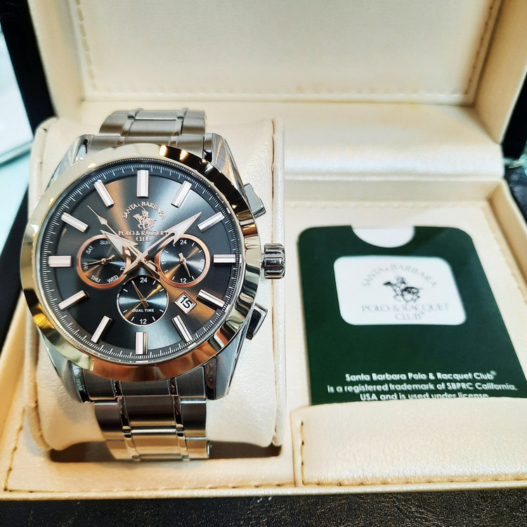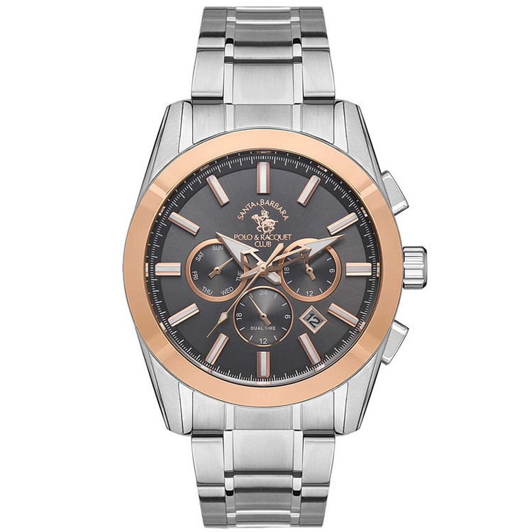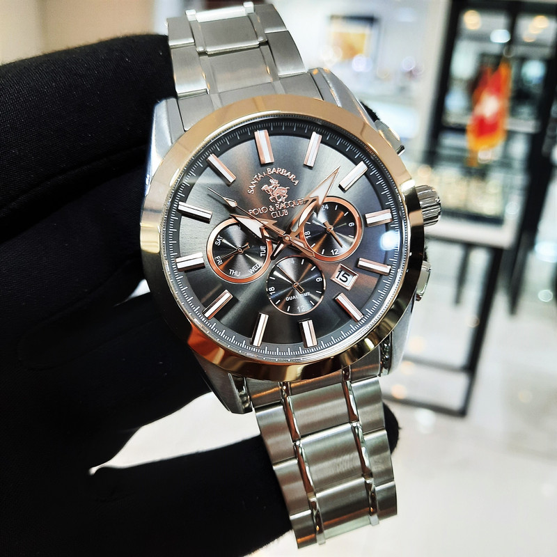 این طرح از برند ساعت پولو سانتا باربارا با طراحی خاص خود برای تیپهای اسپرت و نیمه مجلسی بسیار مناسب میباشد. بند و بدنه ی این ساعت پولو از جنس استیل است و از ترکیب رنگ های خاکستری و رزگلد و نقره ای ای در آن استفاده شده است. از ویژگیهای منحصر به فرد این ساعت میتوان به طراحی ساده ی ساعت اشاره کرد که برای تیپهای مجلسی و رسمی بسیار مناسب میباشد و از طرفی نیز سه موتوره بودن آن حالت اسپرتی به ساعت بخشیده است. همچنین این طرح از برند پولو دارای نمایشگر روزهای ماه و هفته و وضعیت 24 ساعته و دوزمانه میباشد.