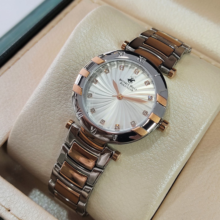 این طرح از برند ساعت پولو بورلی هیلز با طراحی خاص خود برای تیپهای مجلسی بسیار مناسب میباشد. بند و بدنه ی این ساعت پولو از جنس استیل است و از رنگ های رزگلد و نقره ای در آن استفاده شده است. از ویژگیهای منحصر به فرد این ساعت میتوان به طراحی زیبای بند این ساعت و سادگی صفحه ی آن که مورد پسند افراد ساده پسند هست اشاره کرد.