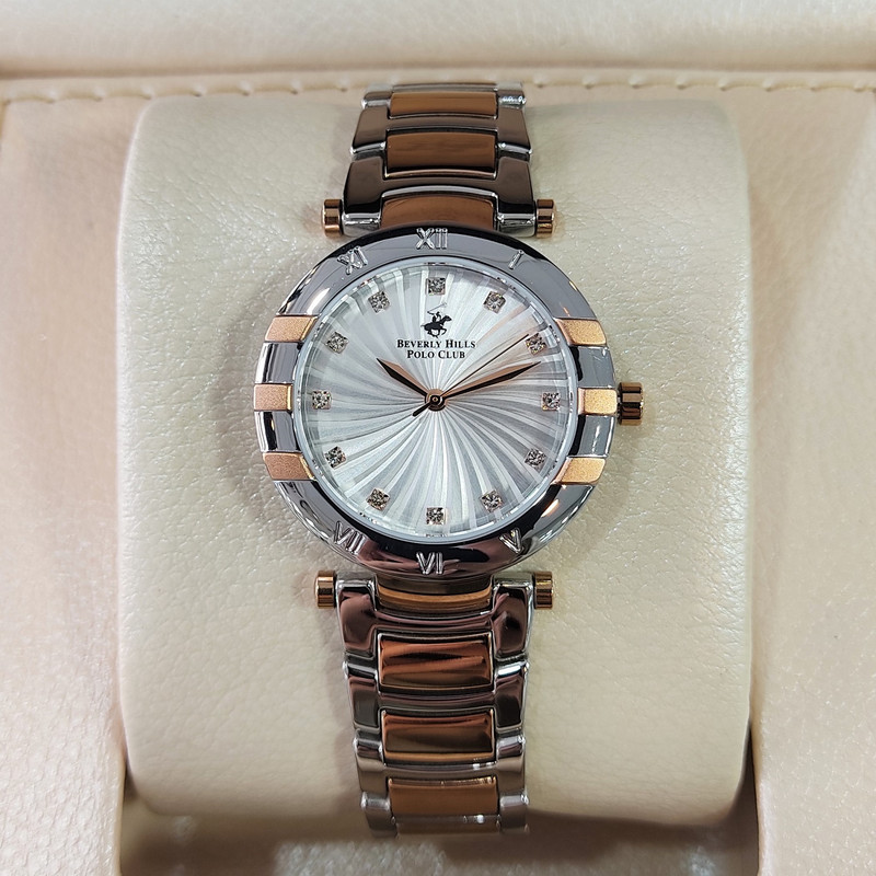 این طرح از برند ساعت پولو بورلی هیلز با طراحی خاص خود برای تیپهای مجلسی بسیار مناسب میباشد. بند و بدنه ی این ساعت پولو از جنس استیل است و از رنگ های رزگلد و نقره ای در آن استفاده شده است. از ویژگیهای منحصر به فرد این ساعت میتوان به طراحی زیبای بند این ساعت و سادگی صفحه ی آن که مورد پسند افراد ساده پسند هست اشاره کرد.