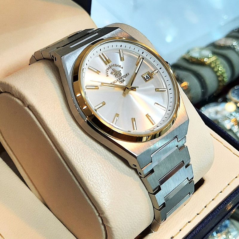 این طرح از برند ساعت پولو با طراحی خاص خود برای تیپهای مجلسی و نیمه اسپرت بسیار مناسب میباشد. بند و بدنه ی این ساعت پولو از جنس استیل است و از ترکیب رنگ نقره ای و طلایی در آن استفاده شده است. از ویژگیهای منحصر به فرد این ساعت میتوان به طراحی ساده ی ساعت اشاره کرد. این طرح از برند پولو دارای نمایشگر روزهای ماه نیز است.