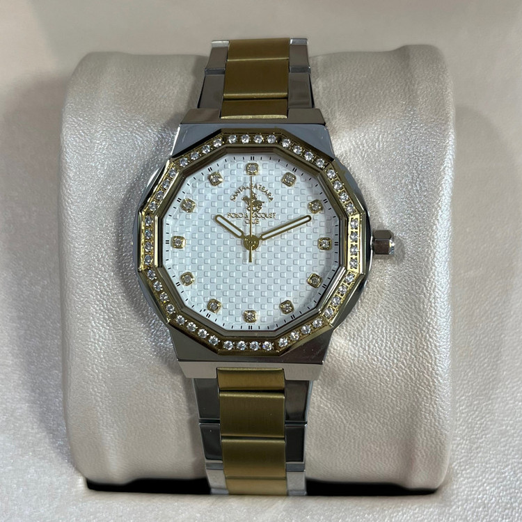 این طرح از برند ساعت پولو سانتا باربارا با طراحی خاص خود برای تیپهای مجلسی بسیار مناسب میباشد. بند و بدنه ی این ساعت پولو از جنس استیل است و از رنگ نقره ای و طلایی در آن استفاده شده است. از ویژگیهای منحصر به فرد این ساعت میتوان به طراحی و سادگی ساعت اشاره کرد که برای تیپهای مجلسی بسیار مناسب میباشد.