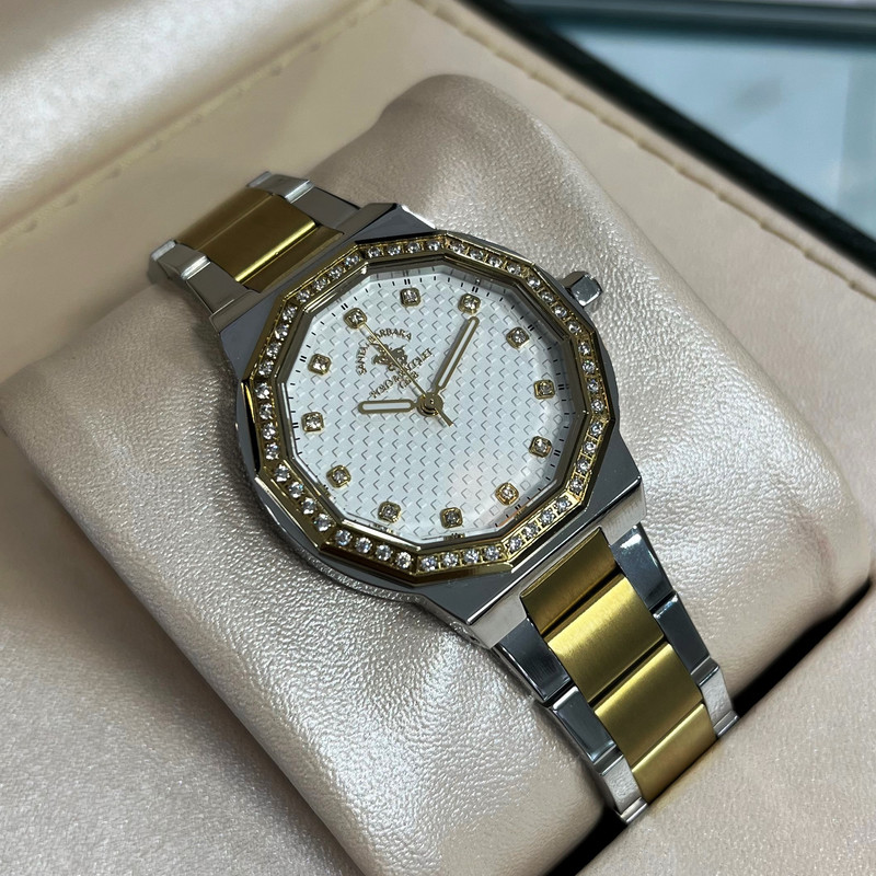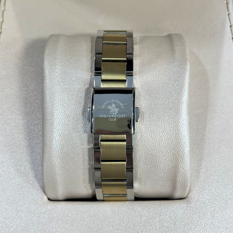 این طرح از برند ساعت پولو سانتا باربارا با طراحی خاص خود برای تیپهای مجلسی بسیار مناسب میباشد. بند و بدنه ی این ساعت پولو از جنس استیل است و از رنگ نقره ای و طلایی در آن استفاده شده است. از ویژگیهای منحصر به فرد این ساعت میتوان به طراحی و سادگی ساعت اشاره کرد که برای تیپهای مجلسی بسیار مناسب میباشد.