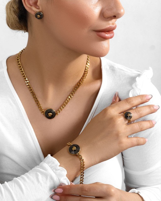 سرویس زنانه ورساچه با الهام از نماد شاخص مدوسا، یکی از خاصترین طرحهای کلاسیک دنیای فشن را با کیفیتی مثالزدنی ارائه میدهد. این سرویس از استیل با دوام و ضد حساسیتساخته شده و با آبکاری طلایی جلوهای نزدیک به طلا دارد. پوشش نانو به کار رفته در این محصول از ثبات رنگ آن محافظت کرده و در برابر تعریق و رطوبت مقاومت بالایی ایجاد میکند.