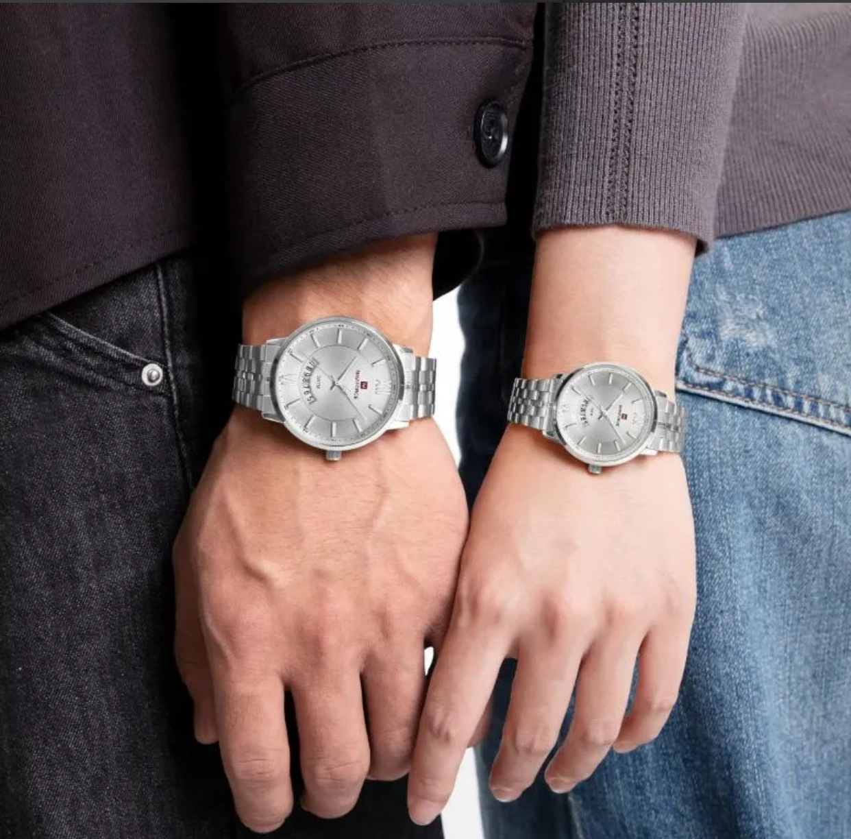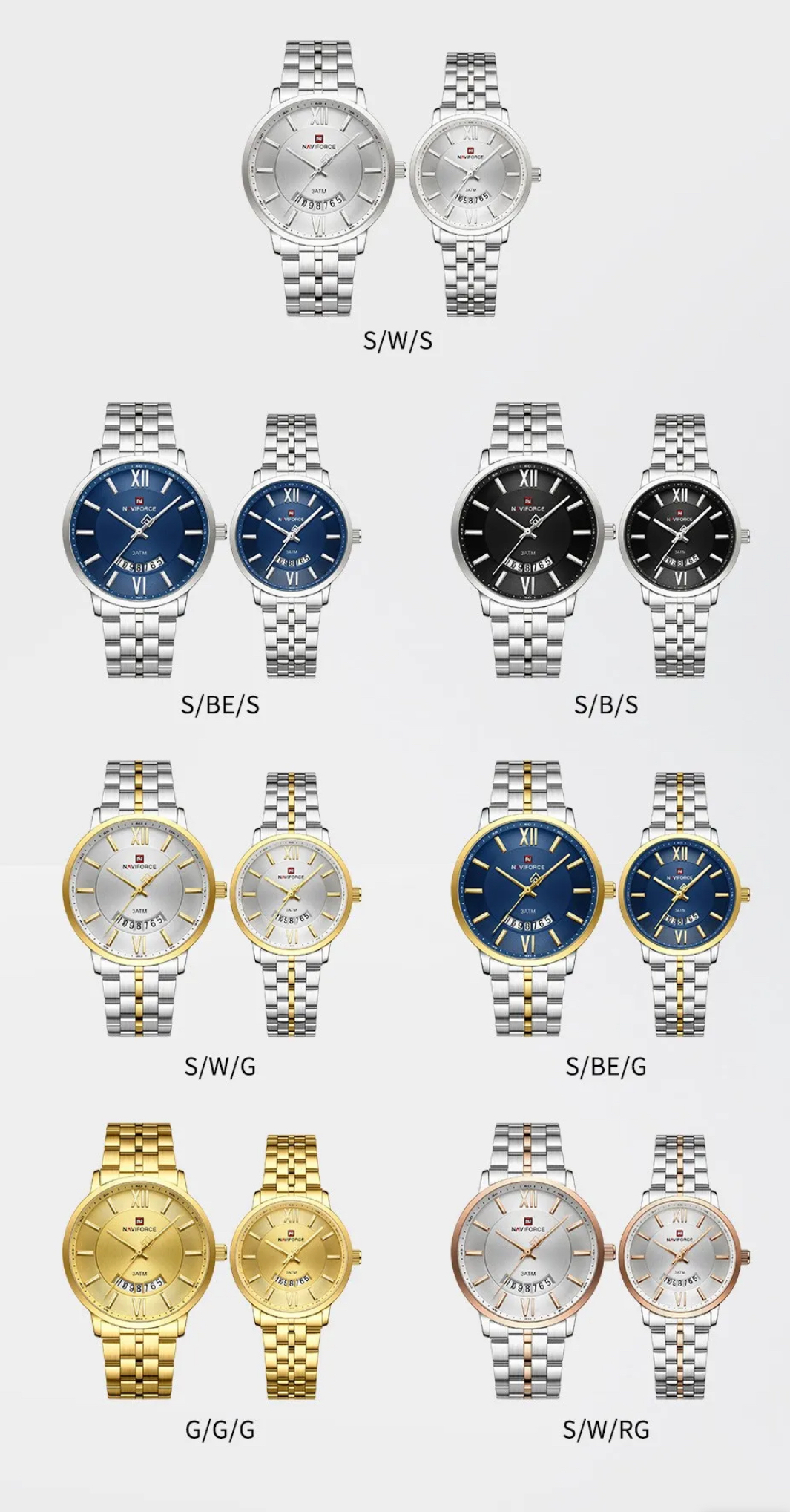 ساعت مچی ست زنانه و مردانه نیوی فورس Nf ۹۲۳۸ نقره ای